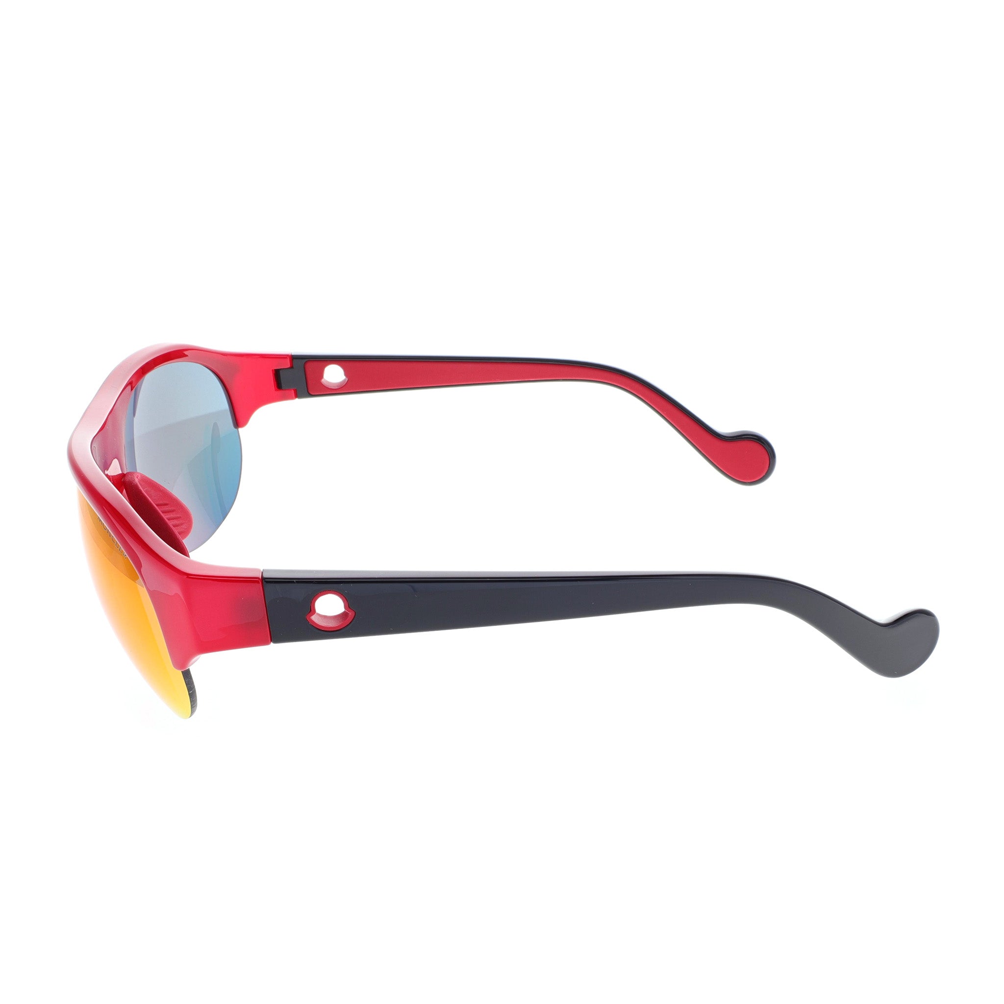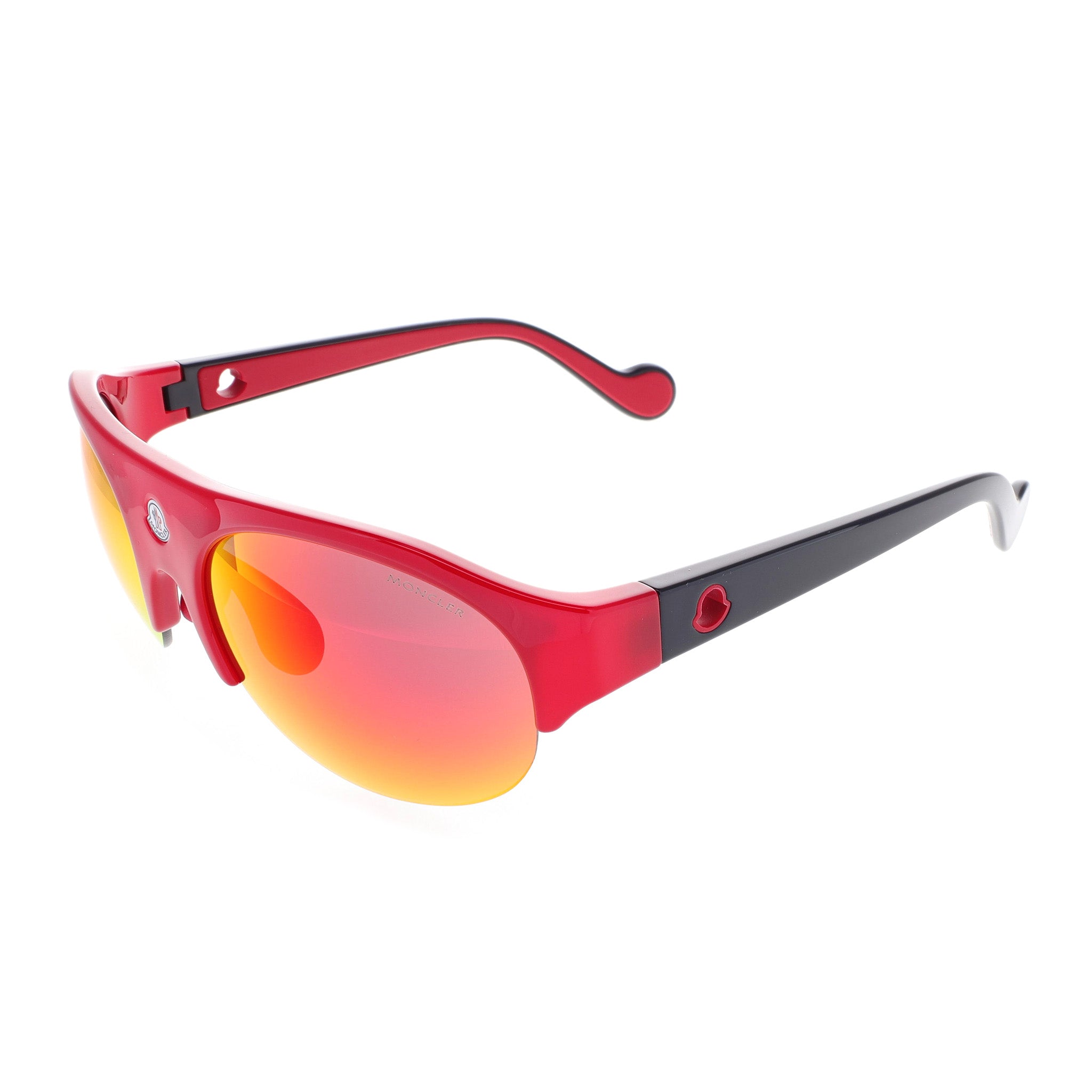 The Moncler ML0050-68C Sunglasses boast a semi-rimless design in a beautiful glossy red frame with mirrored gray / red / orange lenses. They showcase discreet branding on the temples with a sporty yet chic look. Moncler Eyewear presents a range of distinctive, performance-oriented models, blending functionality with durability. These sunglasses deliver 100% UV protection, marrying style with practicality against sun damage.