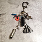 These MBMJ multi-purpose chic keychain / bag charm is a runway piece seen on fashion shows. Features five exchangeable rings and a carabiner to fasten onto belt loops, hooks or bag handles. Three metal pill holders. Super rare. Sold out vintage edition. Circa 2015.