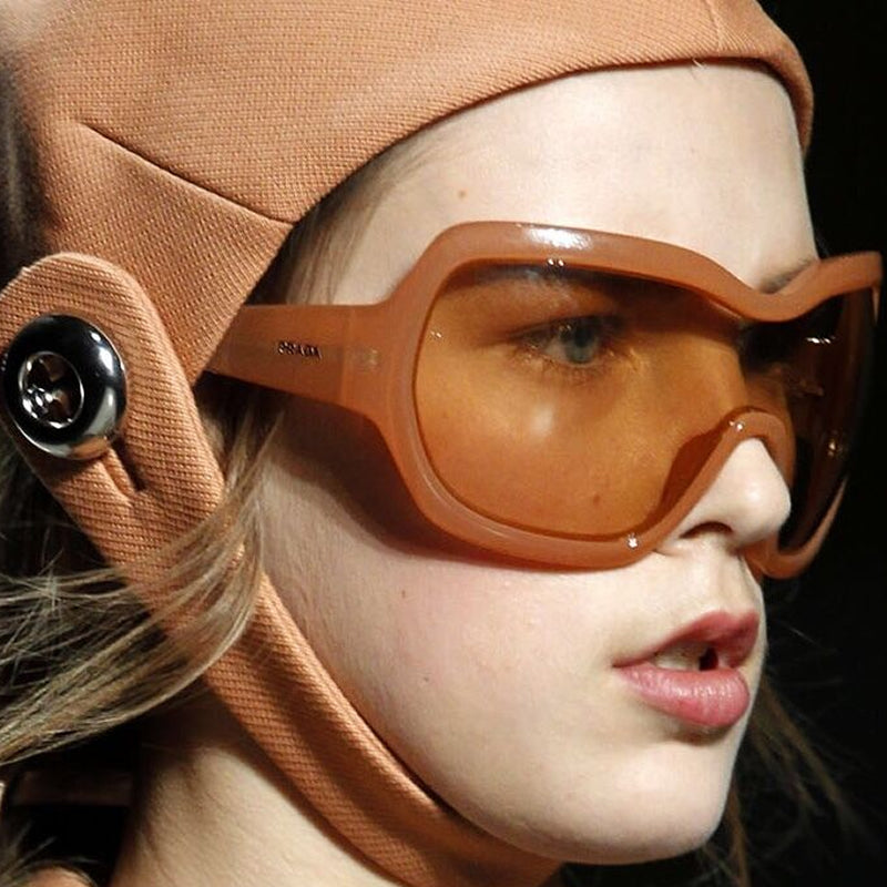 These Prada over-sized shield sunglasses are runway pieces; seen on fashion shows and advertisements. Super rare. Sold out edition.