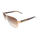 These Ralph Lauren Women's Aviator Sunglasses are a perfect embodiment of the brand's ethos. The aviator style, a timeless classic, is elevated with a bronze metal and acetate frame, exuding a warm and luxurious feel. The brown gradient lenses not only add a touch of elegance but also ensure 100% UV protection, safeguarding your eyes from harmful rays. With a comfortable fit, thanks to a 59mm lens width, 13mm bridge width, and 130mm temple length, these sunglasses are perfect for any occasion.