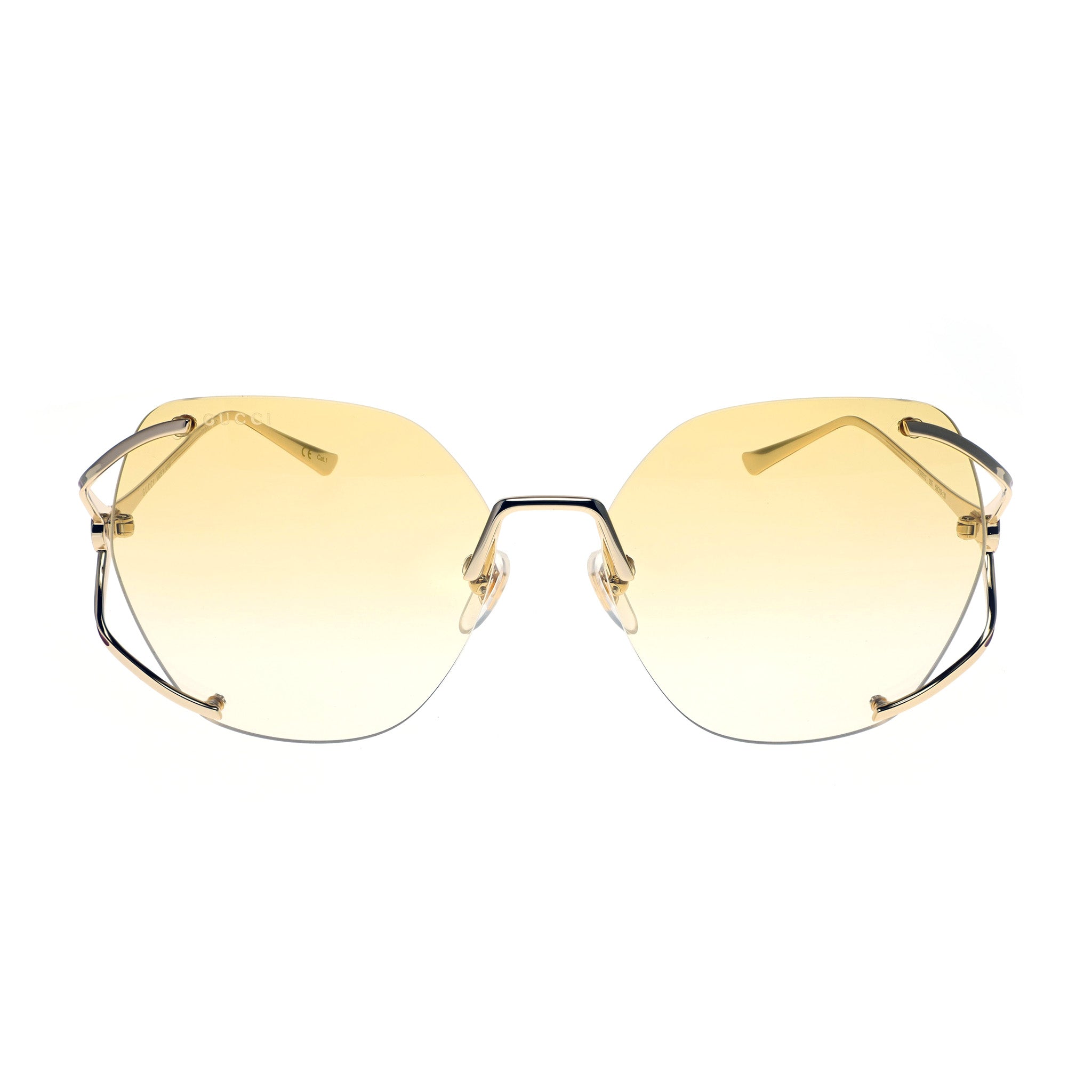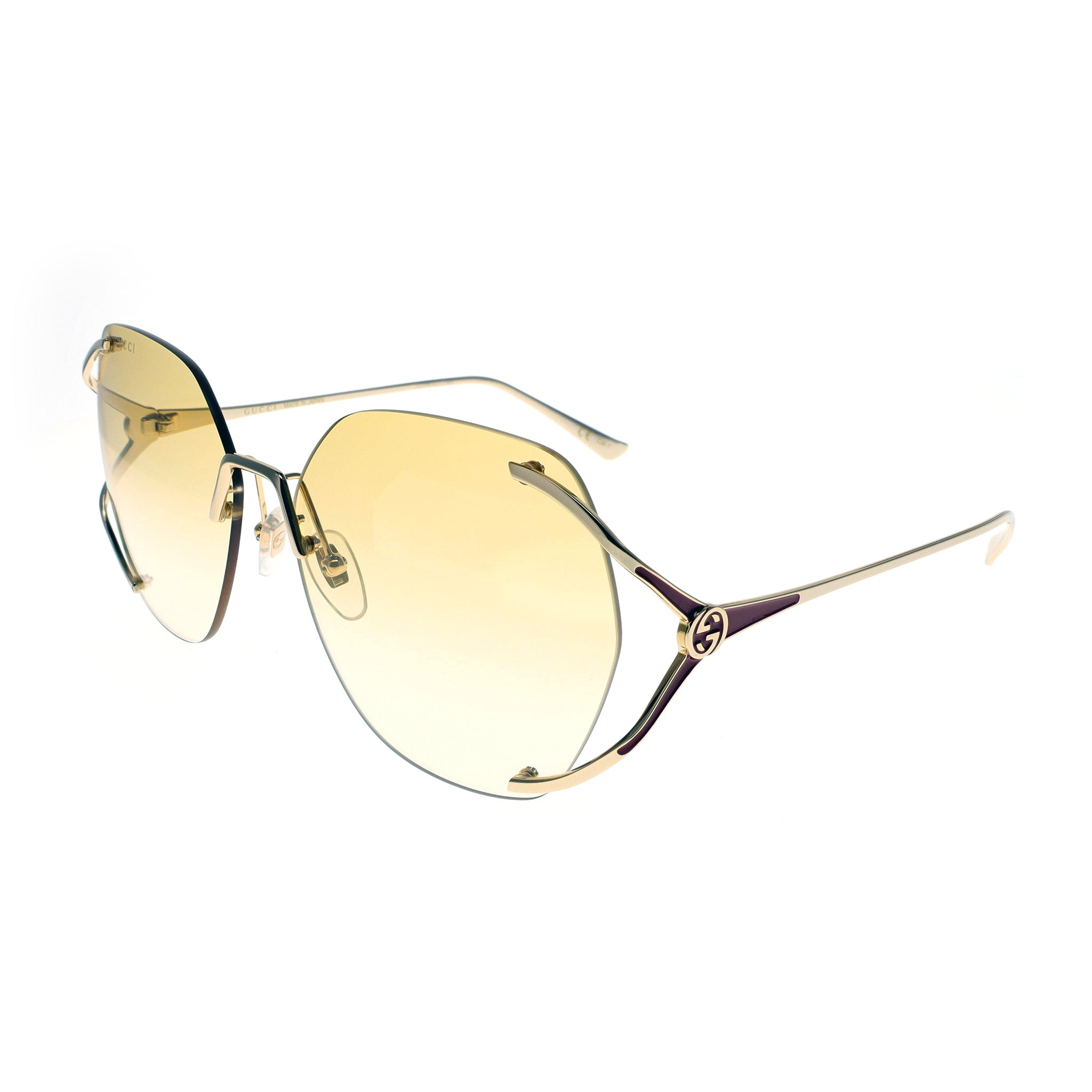 Sophistication and luxury from the iconic house of Gucci. The GG0651S-005 Sunglasses feature a beautiful yellow gradient geometric lenses. The Double-G logos decorate the gleaming arms of designer sunglasses that feature floating gradient lenses. Made in Japan. Case colors may vary.
