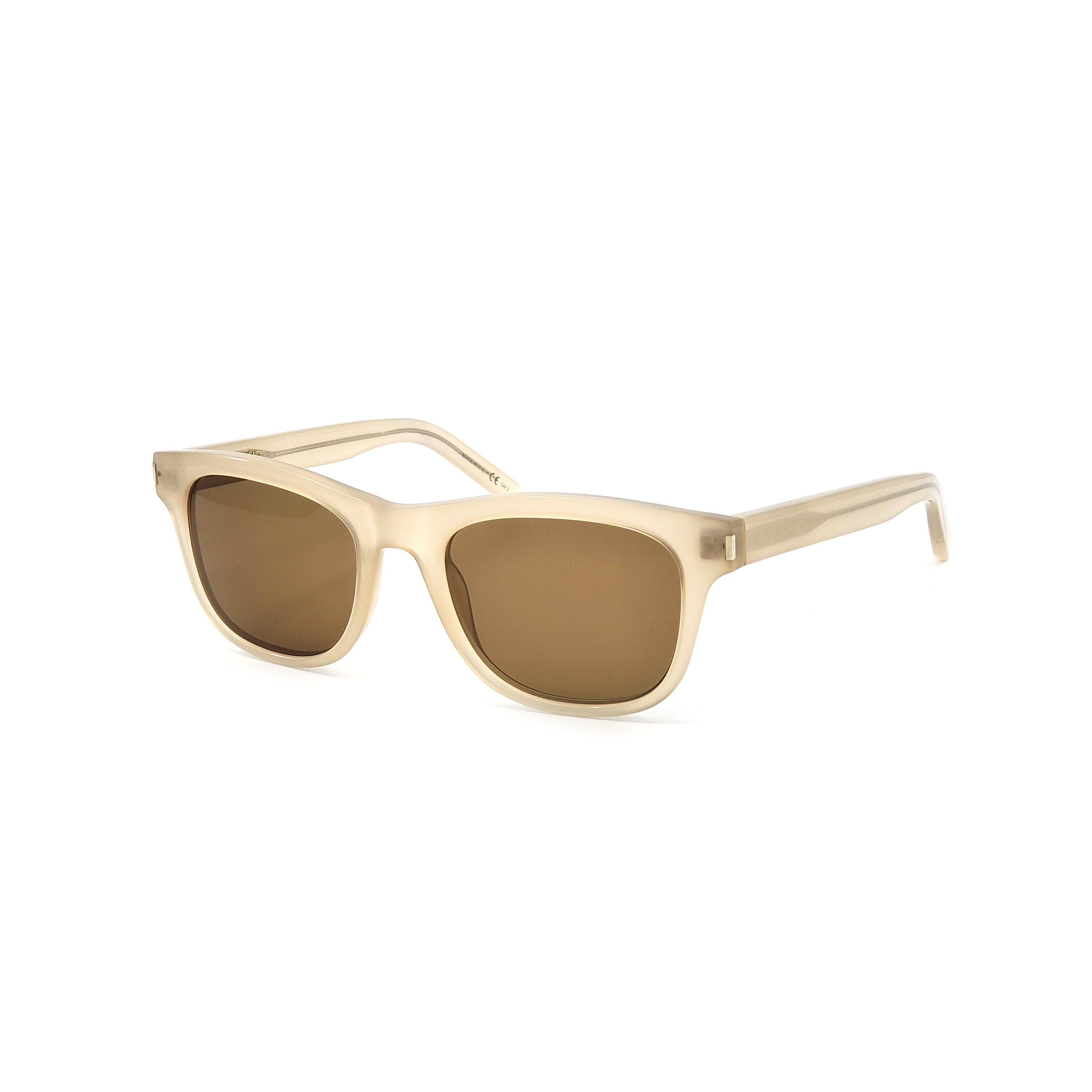 Throughout the years, YSL's groundbreaking styles have become iconic cultural and artistic references. The CLASSIC2-YSL12E5V model features a translucent beige frame and brown/bronze lenses with 100% UVA/UVB protection. Size: 54-21-140.