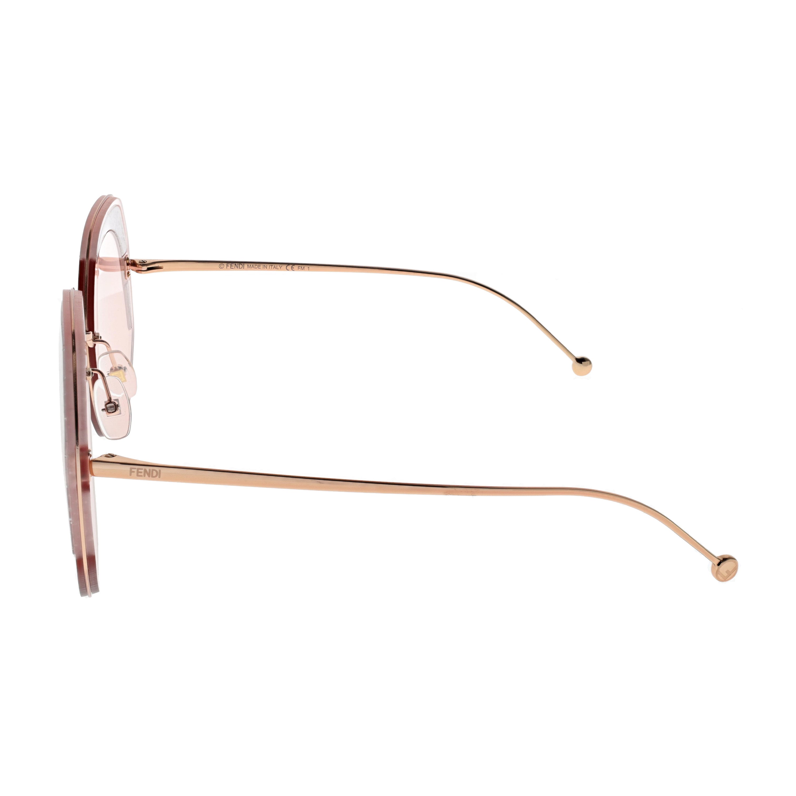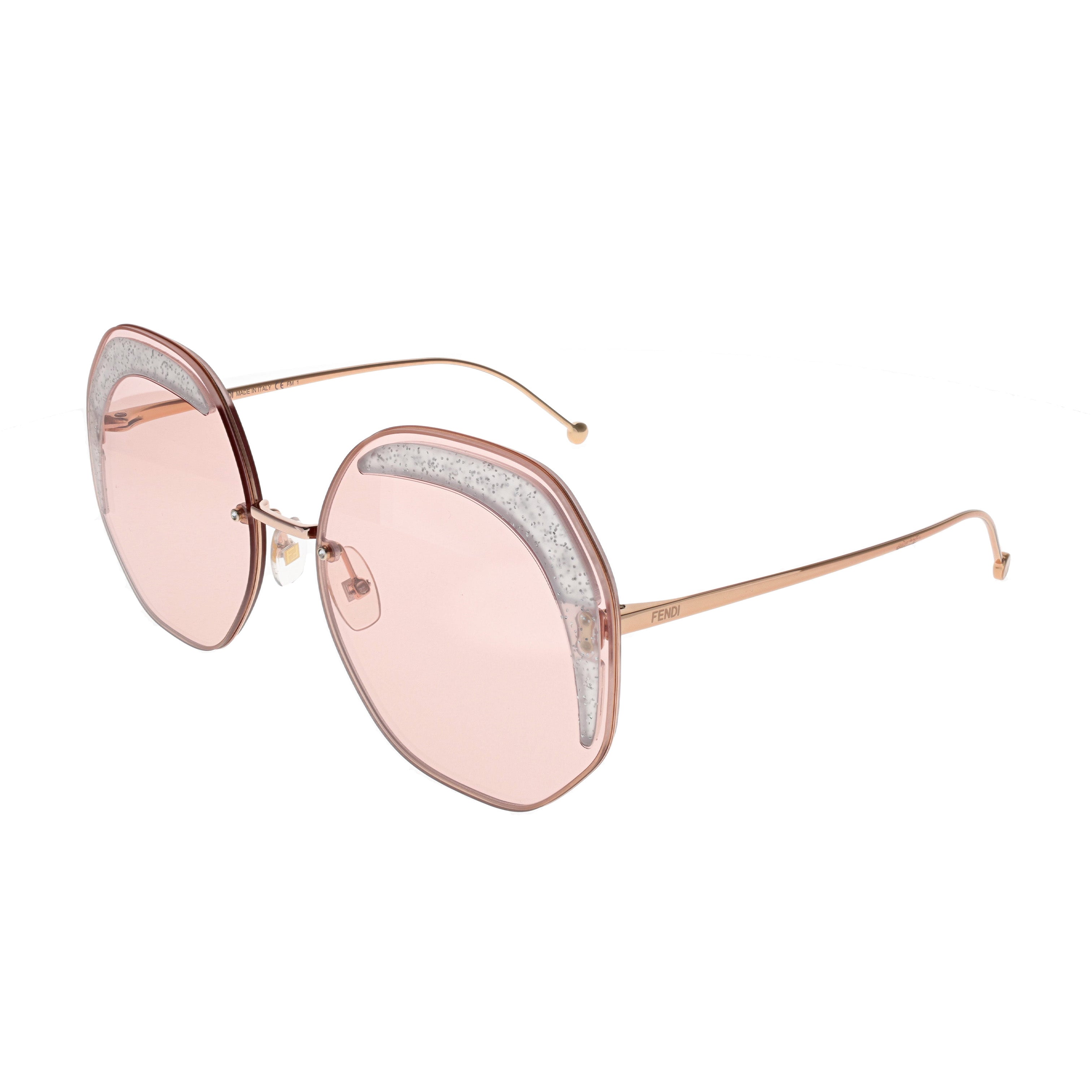 Make a statement with Fendi Sunglasses - FF0358S in coral, a captivating choice for women who embrace bold and feminine style. Crafted in Italy, these large round sunglasses (63-19-140) feature a luxurious gold metal frame that adds a touch of glamour to your look. The pink solid color lenses exude sophistication and offer both style and protection. With a 19mm bridge and 140mm temple/arm, these sunglasses ensure a comfortable and fashion-forward fit. Make a bold fashion statement with the FF0358S-1N5U1 model – a true symbol of high-end quality and Italian excellence.