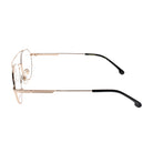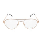 Introducing Carrera 1110 Eyeglasses – a sleek union of modern style and classic design. These unisex eyeglasses, featuring a small aviator frame (52-19-145), bring a touch of sophistication to any look. Crafted from elegant gold metal, the frame exudes a timeless appeal. With a 52mm lens, 19mm bridge, and 145mm temple/arm, these eyeglasses ensure a comfortable and tailored fit. Elevate your eyewear collection with these versatile and stylish Carrera eyeglasses.