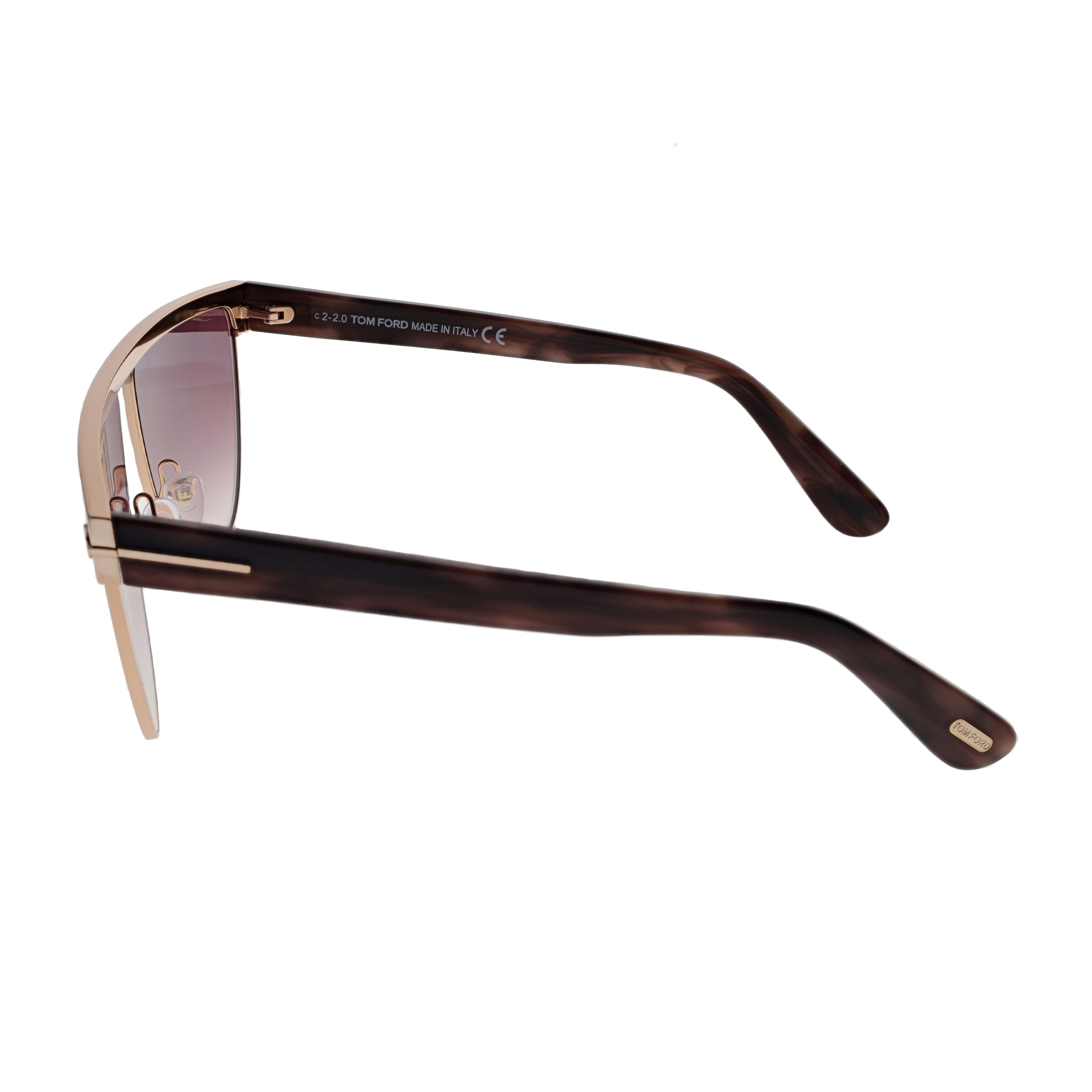 Experience the sophisticated allure of Tom Ford with these exquisite sunglasses. Known for his esteemed career and numerous design awards, Tom Ford's eyewear reflects the brand's core values of quality and style. The FT0570-28Z model, made in Italy, features a gold frame with dark brown Havana temples and light pink gradient lenses that offer 100% UVA/UVB protection. These sunglasses blend vintage and contemporary influences, distinguished by the elegant metal "T" detail, an iconic symbol of the brand's refined luxury. Comes brand new in the original case.