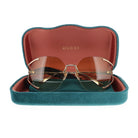 Sophistication and luxury from the iconic house of Gucci. The GG0651S-005 Sunglasses feature a beautiful yellow gradient geometric lenses. The Double-G logos decorate the gleaming arms of designer sunglasses that feature floating gradient lenses. Made in Japan. Case colors may vary.
